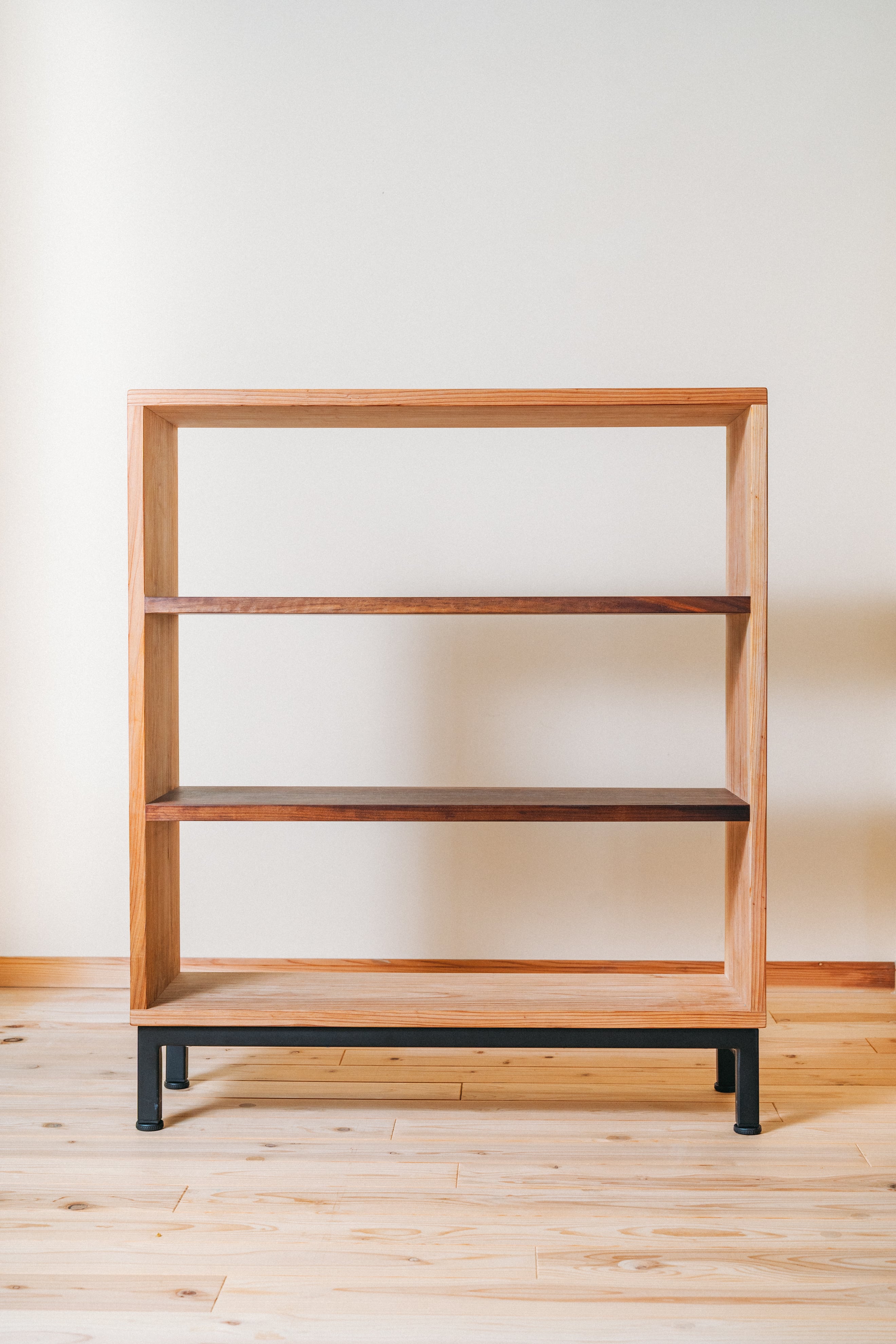 外枠:杉無垢材(棚板はウォールナット無垢材を使用)