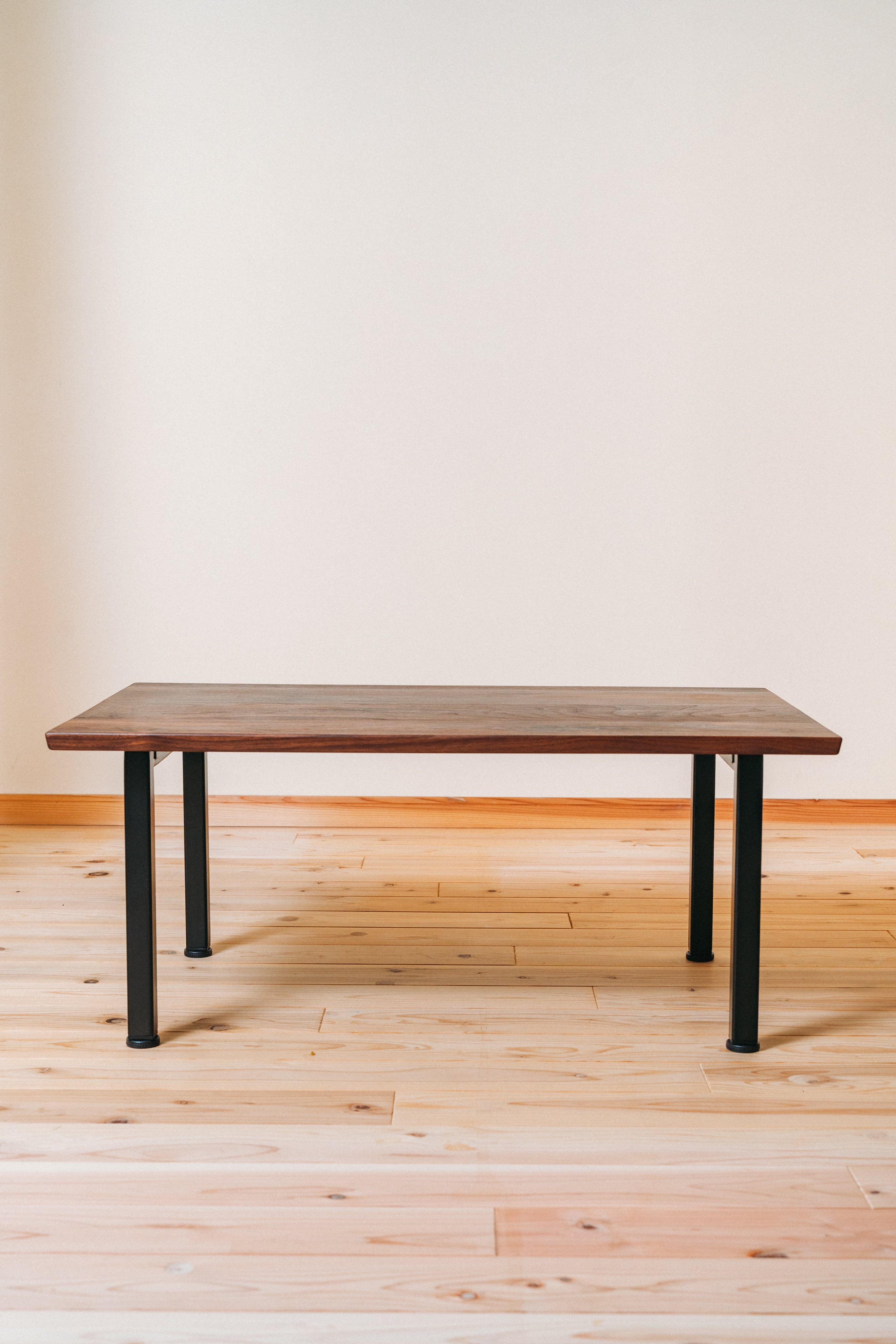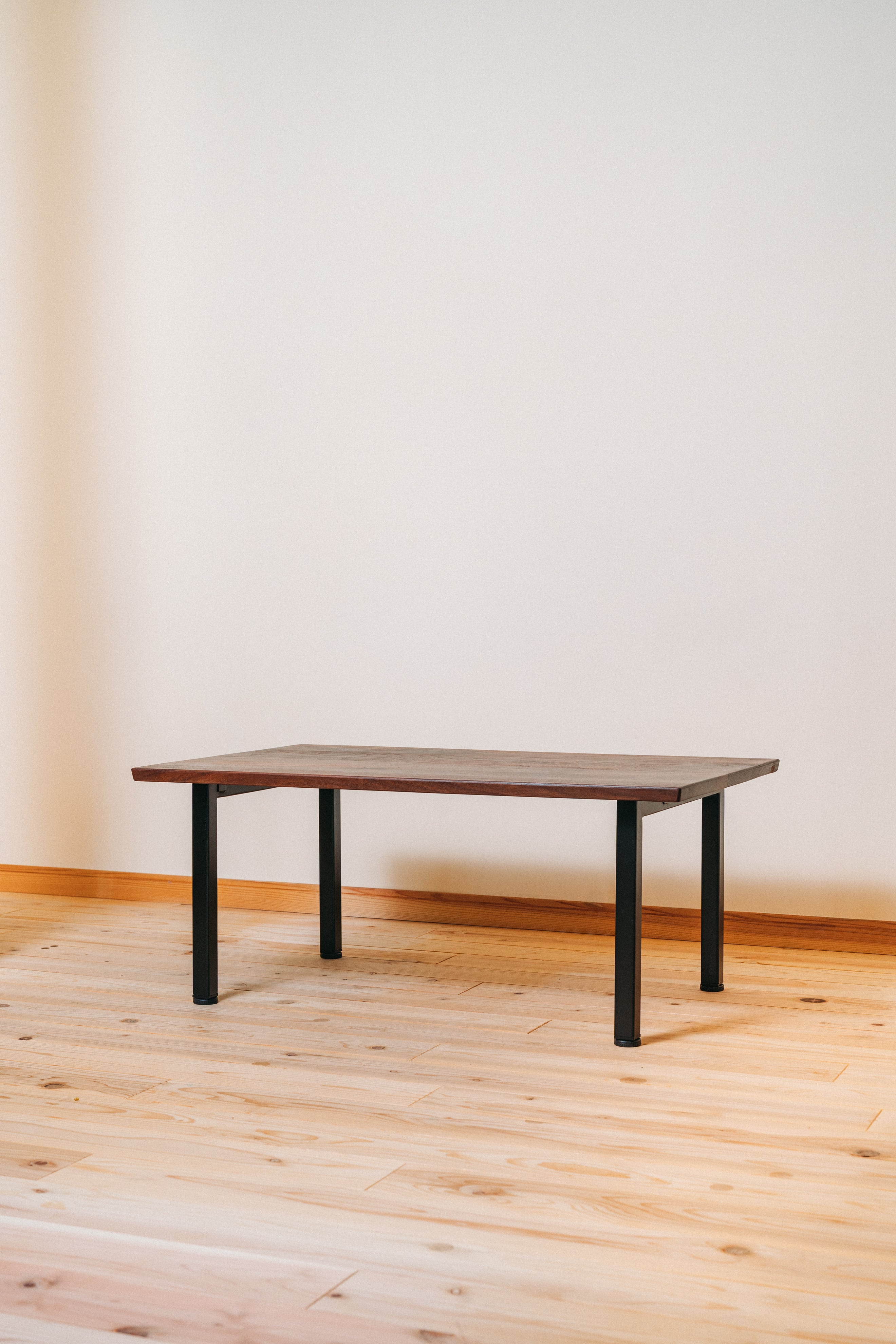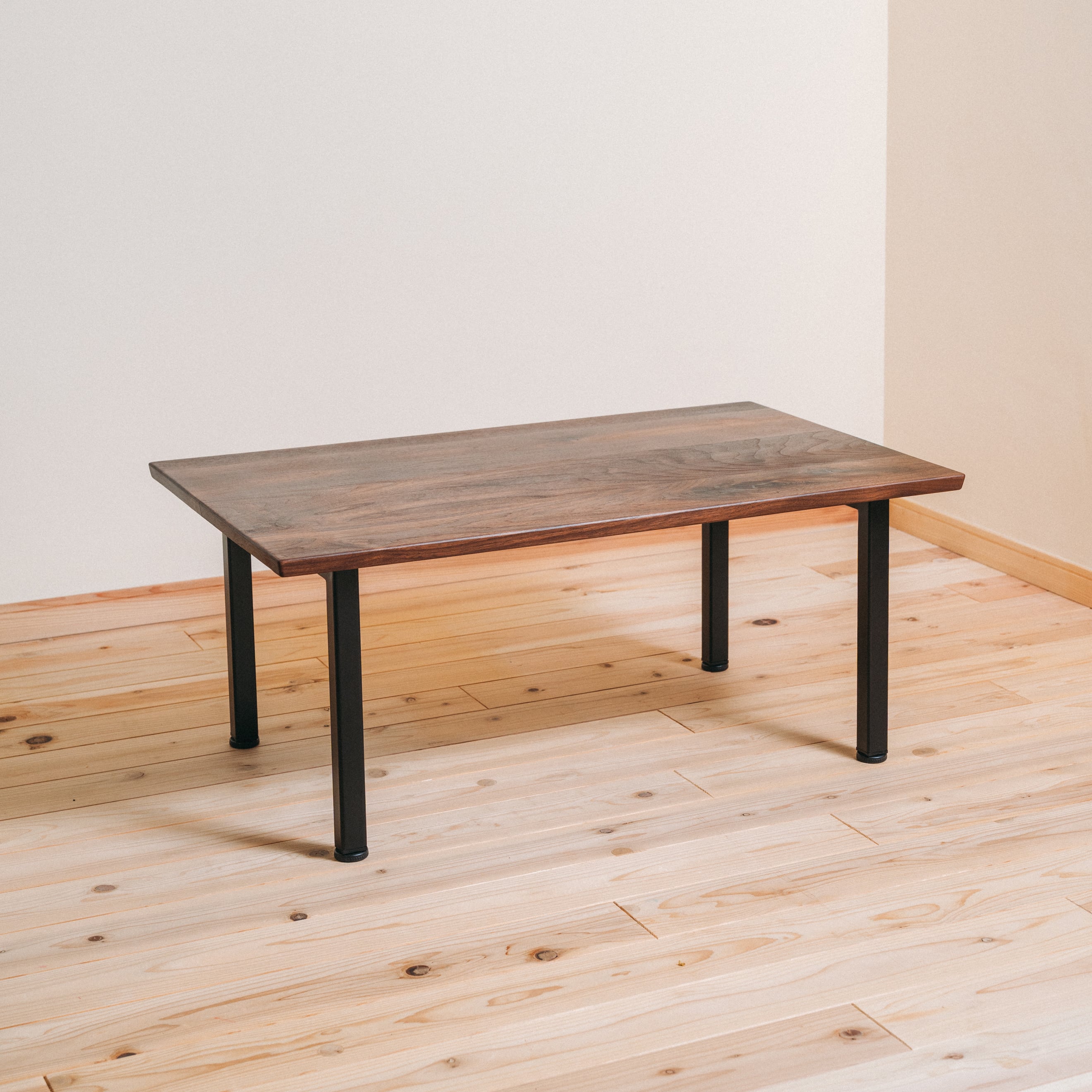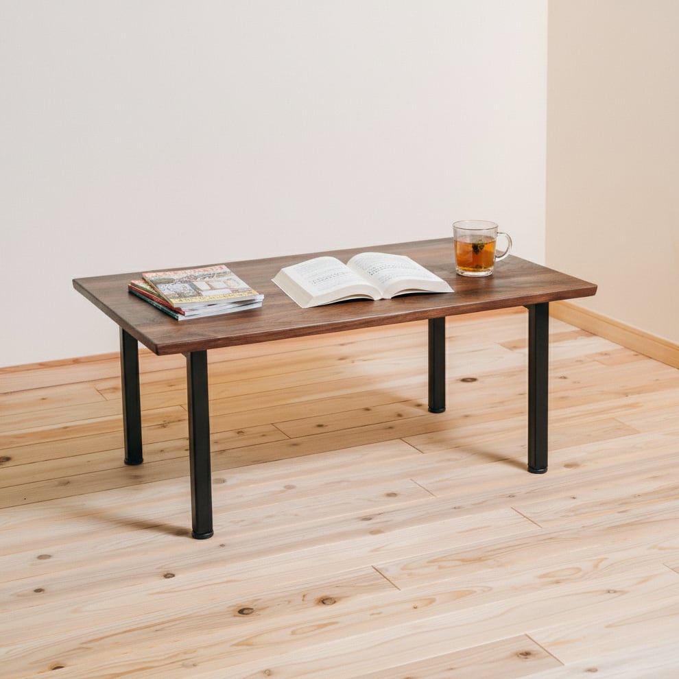 ウォールナット無垢材×スチール脚 ローテーブル|天然木の高級リビングテーブル