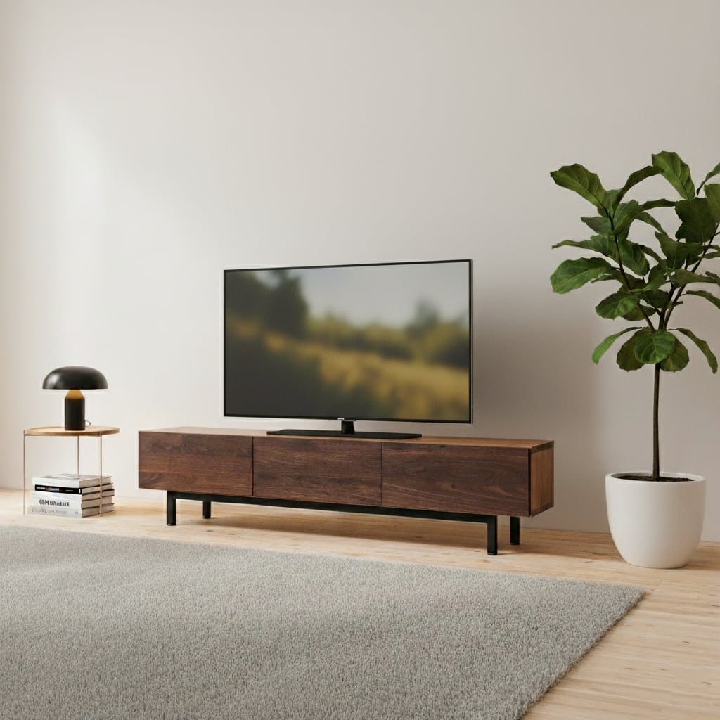 無垢材×スチール脚 テレビボード|収納付き[幅180cm]